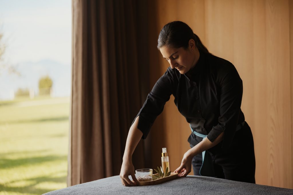 Tra i più apprezzati c’è il massaggio rilassante aromaterapico, un trattamento dalle manualità lente e avvolgenti, eseguito con olio essenziale di lavanda e verbena, due piante simbolo del territorio gardesano. Questo massaggio favorisce il rilascio delle tensioni, migliora la qualità del respiro e promuove uno stato di armonia interiore. È disponibile in tre diverse durate:30 minuti – €65; 50 minuti – €105; 80 minuti – €165