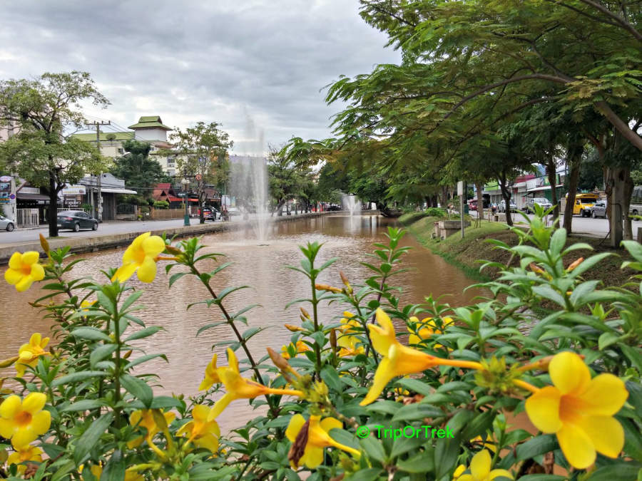 La parte moderna, estesa lungo il fiume Ping, è famosa per il mercato notturno Thanon Chang Klan e gli hotel di lusso, mentre il centro storico è delimitato dalle rovine di un’antica muraglia a sua volta circondata da un fossato attraversabile grazie a dei ponticelli. Dentro le mura di Chiang Mai si estende un dedalo di stradine strette che, in apparenza, sembrano tutte uguali.