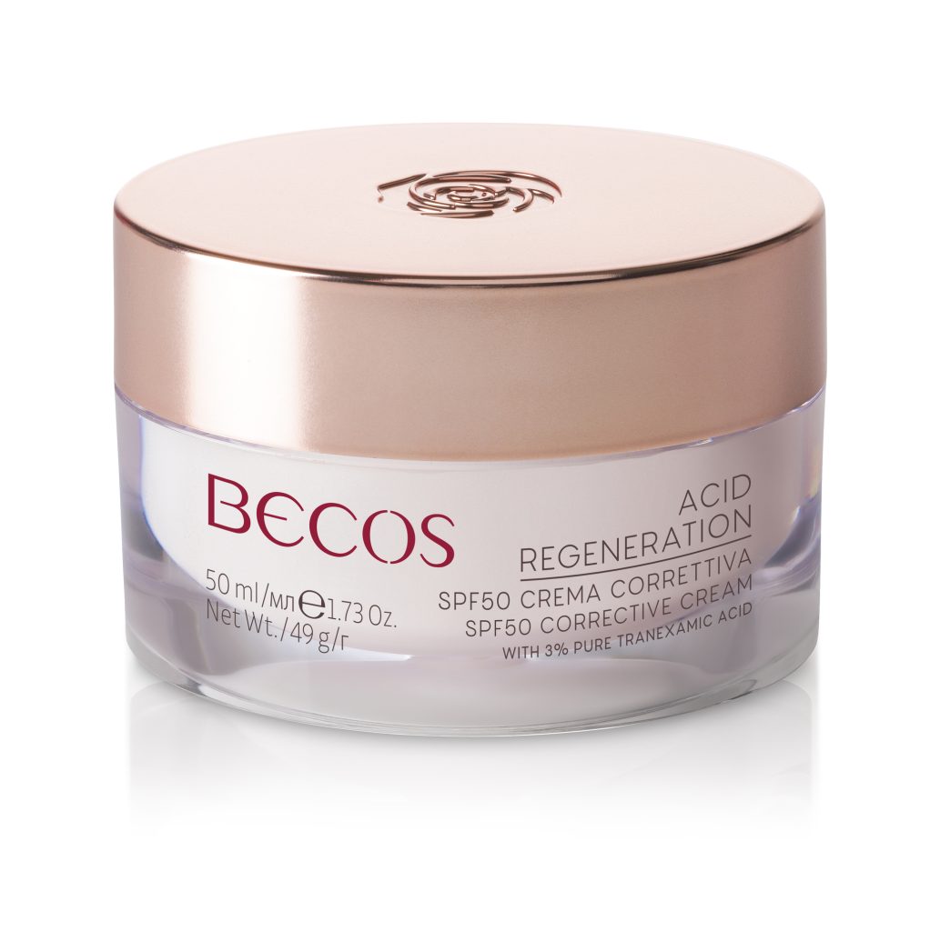 Il 50% della popolazione globale soffre di iperpigmentazione, causata da melasma, macchie post-acne, macchie solari o senili. Per rispondere a queste esigenze, Becos introduce un alleato innovativo: l’Acido Tranexamico, un attivo che contrasta efficacemente le discromie cutanee e dona uniformità e luminosità al viso. Grazie alla combinazione con ingredienti come Niacinamide, Acido Glicolico e Ceramidi, i nuovi prodotti e trattamenti professionali BECOS ACID REGENERATION offrono una soluzione mirata per una pelle “come la luce”.