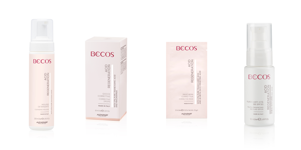 Per potenziare i risultati dei trattamenti in cabina, Becos propone una linea di prodotti di autocura con l’innovazione dell’Acido Tranexamico: