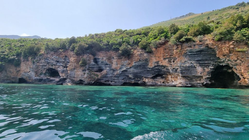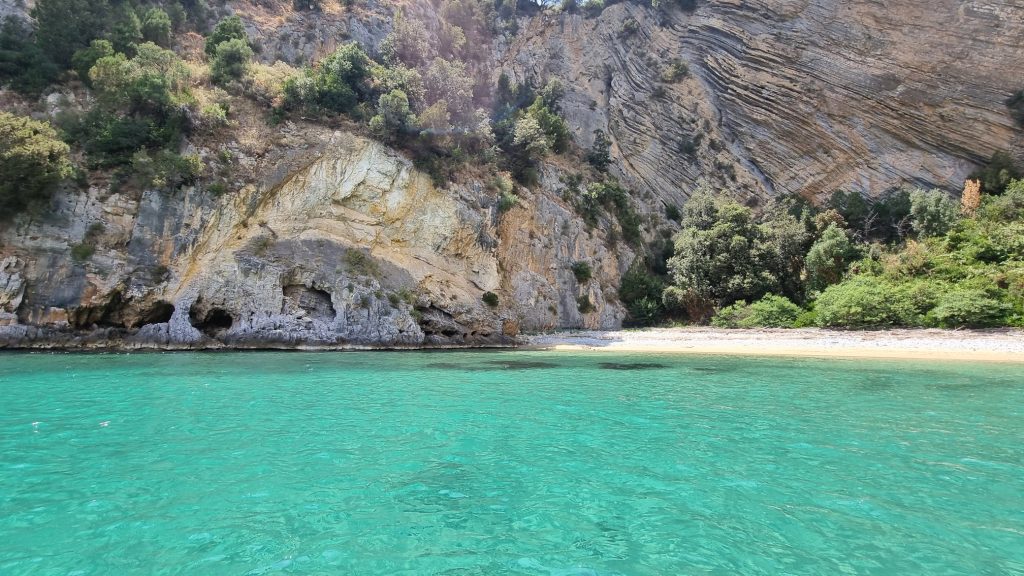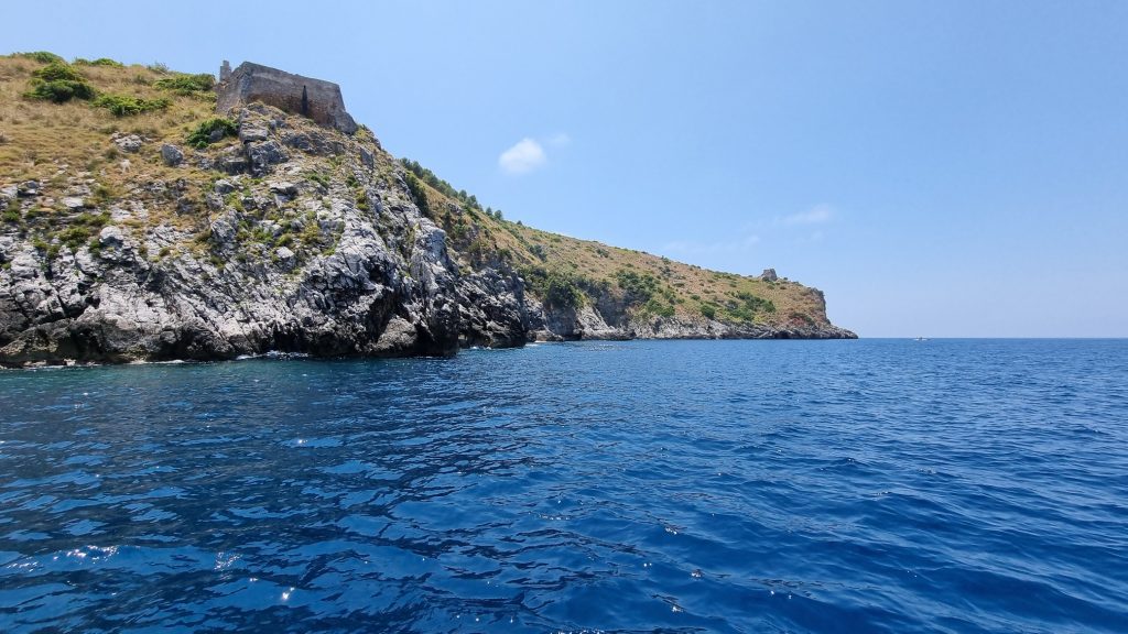Qui il paesaggio si fa maestoso e selvaggio. Le alte pareti rocciose si tuffano a picco nel mare, intervallate da piccole cale segrete raggiungibili solo via mare o attraverso antichi sentieri. In barca, si naviga lungo un tratto di costa ancora intatto, dove le sorgenti di acqua dolce che sgorgano tra le rocce si mescolano all’acqua salata, creando effetti visivi e termici sorprendenti.