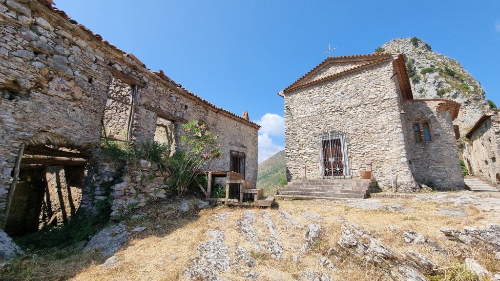 Contemplare l’abbandono. San Severino di Centola vecchia invita a farlo, senza fretta. A camminare tra pietre che hanno visto secoli, tra rovine che parlano ancora una lingua antica. Qui, sul colle che domina la valle del Mingardo, il tempo si è fermato all’inizio del Novecento. Il borgo medievale, fondato tra il X e l’XI secolo e legato al nome della potente famiglia dei Sanseverino, si adagia nella quiete come un racconto sospeso.