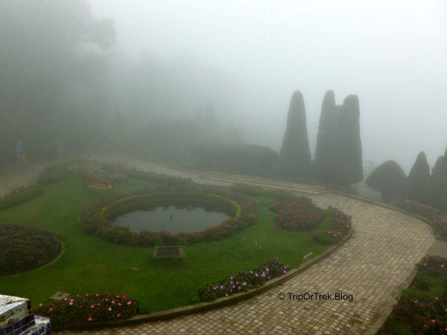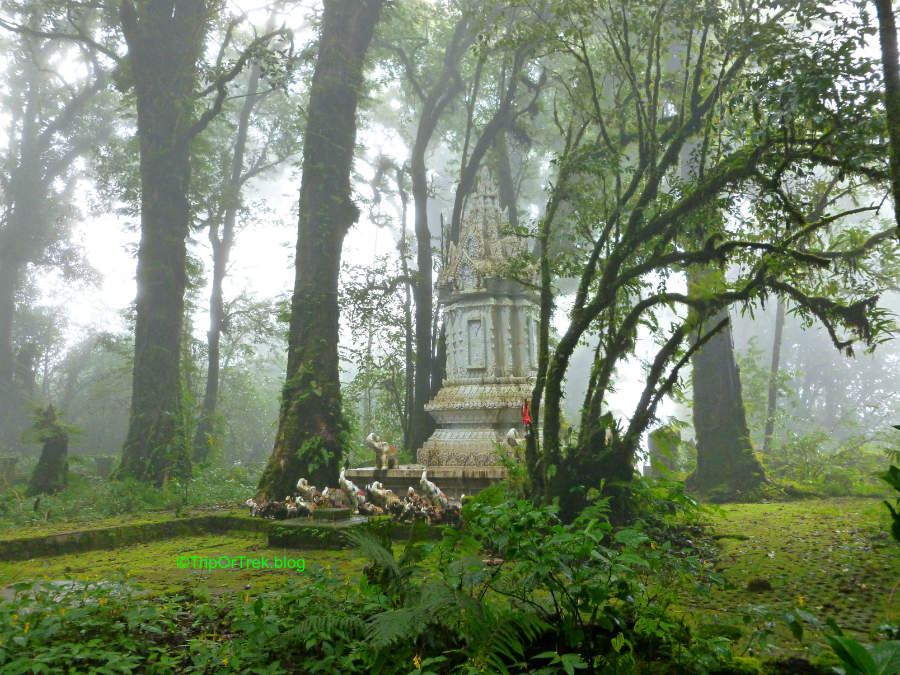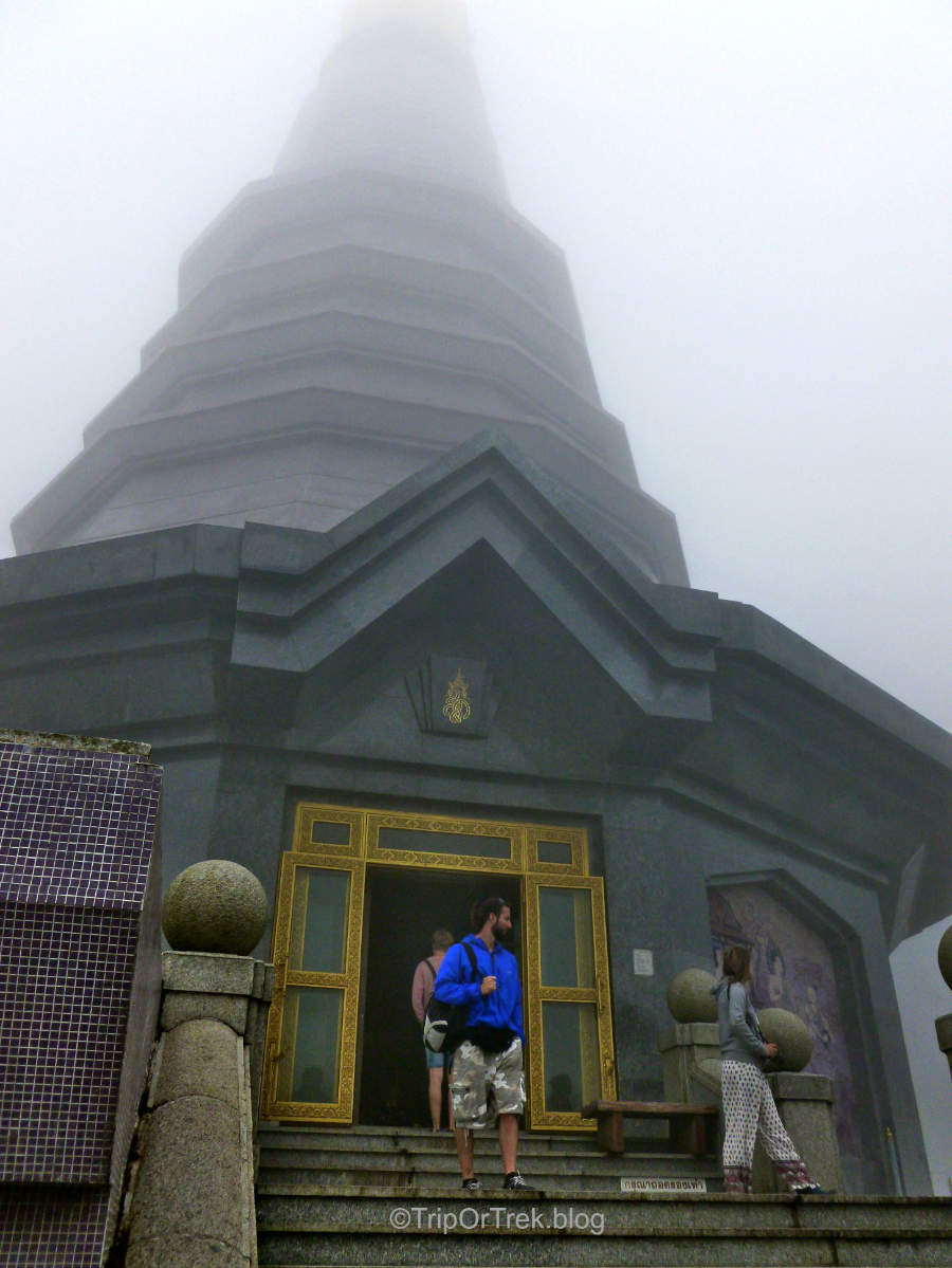 Proseguendo nell’itinerario la quotidianità di quelle persone ha lasciato il posto ad una nebbia grigia e spessa che ha ammantato la vetta più alta della Thailandia nascondendo le imponenti sagome dei Phra Mahathat Naphamethanidon & Naphapholphumisiri le due pagode costruite per commemorare i sessant’anni di Sua Maestà Re Bhumidol Adulyadej e della Regina Sirikit.