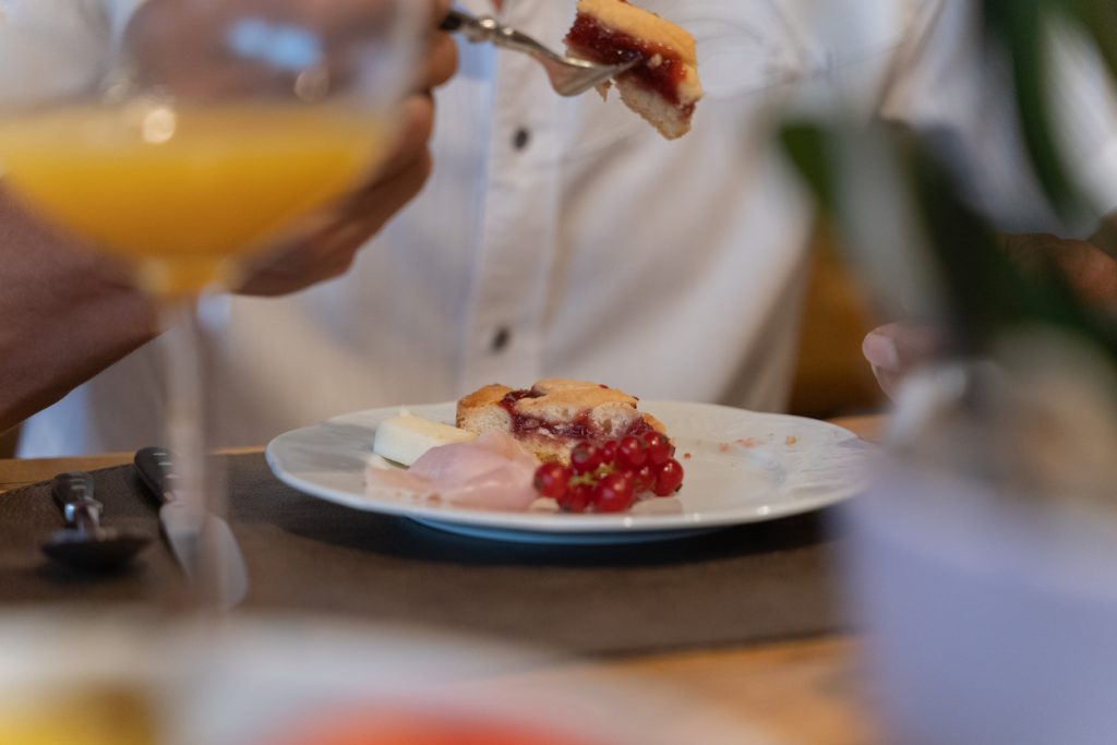 La cucina dell’Alp Stube celebra i prodotti locali e le ricette tipiche di Sappada, con un menù semplice e genuino che permette agli ospiti di riscoprire i sapori autentici della tradizione. La mattina, lo spazio si trasforma in una sala buffet con dolci fatti in casa, yogurt, frutta fresca e specialità salate provenienti da produttori del territorio.
