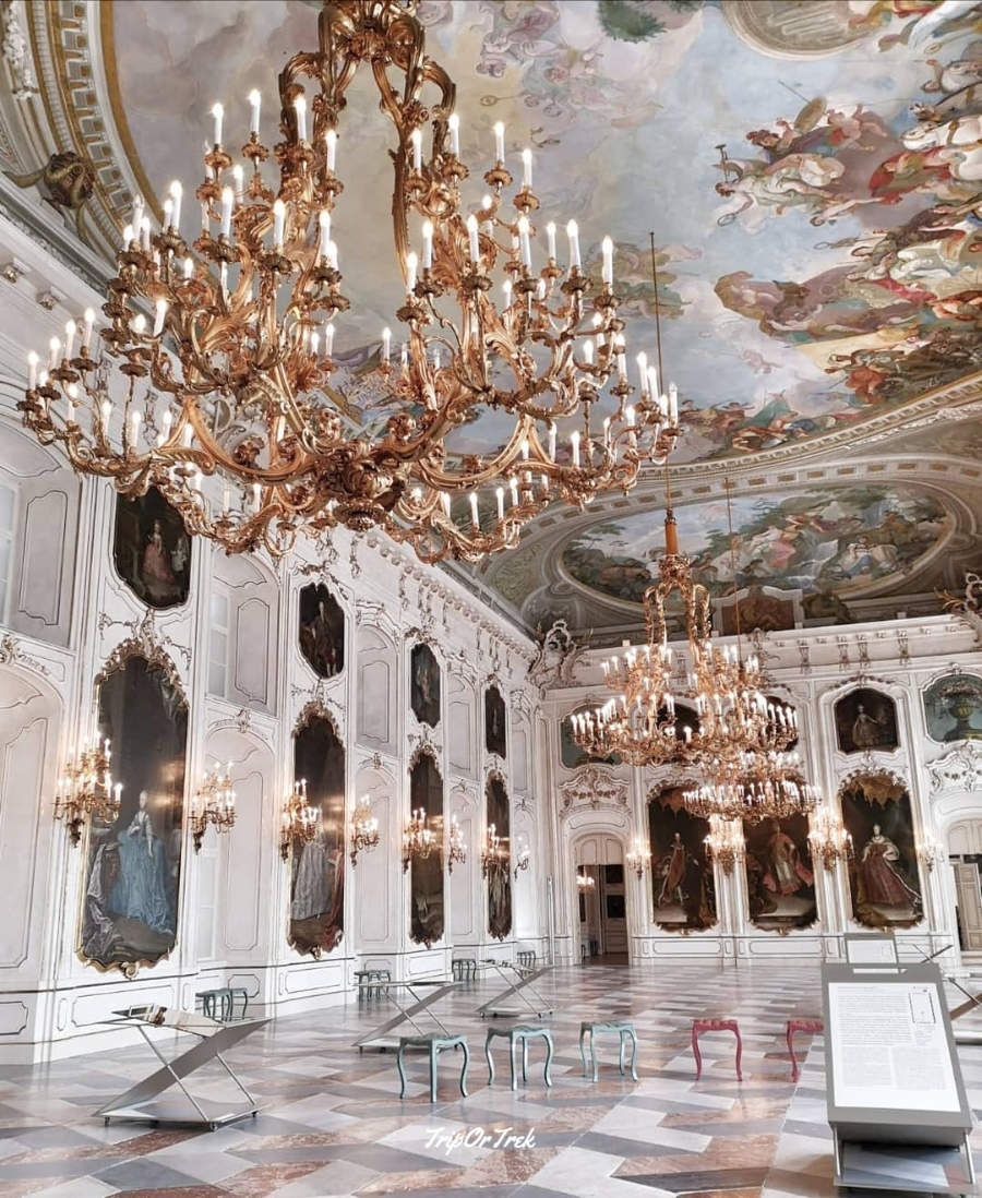 L’imperatrice restaurò il castello in stile Rococò e trasformò il salone delle feste in una galleria d’arte che celebrava con grandi ritratti ogni membro degli Asburgo-Lorenza. Volti e sguardi di imperatori che cambiarono l’Europa, ritratti nel fiore degli anni, quando il loro destino non era altro che essere i figli di una delle donne più potenti di tutti i tempi.