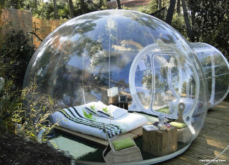 Chic e ad impatto zero le strutture tondeggianti sono ignifughe e dotate di un sistema che ne consente la costante aerazione. Ogni camera è chiamata con un nome diverso (la Bulle Zen, la Bulle Nature, la Bulle Glamour, la Bulle Mille et une nuits, la Bubble Suite Chic et Design) e per godere appieno della bellezza della natura gli ospiti avranno a disposizione una grande vasca jacuzzi all’aperto.