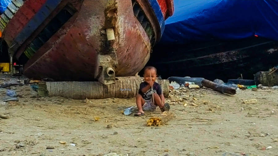 Lui aveva circa 3 anni, se ne stava accovacciato con i piedini nudi nella sabbia sporca e piena di rifiuti. Giocava, felice, con uno sguardo furbo. Per i bambini quella è la normalità. Quella è la felicità: un gioco di plastica portato dal mare. Un gioco che magari nasconde la storia di un altro bambino che quel gioco, forse perchè ne aveva troppi, l’ha buttato.