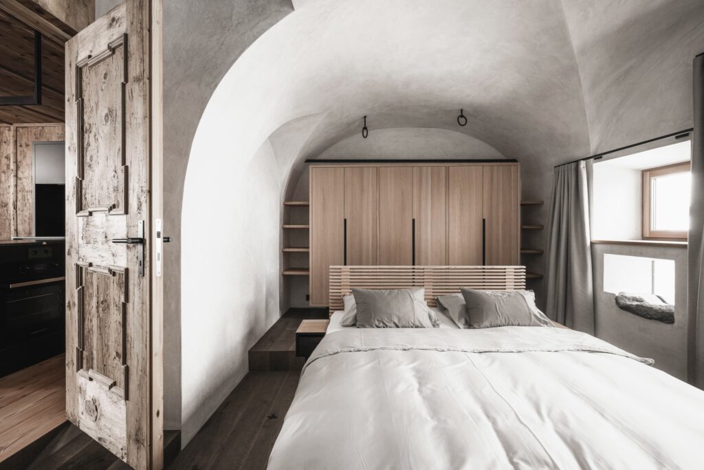 Nel cuore di Chiusa, Tintorum Exclusive Living offre un’esperienza dove il fascino del passato incontra il comfort della modernità. I suoi quattro appartamenti si trovano all’interno di un edificio risalente al XV secolo. Un tempo parte delle antiche mura cittadine e poi trasformato in centro di assistenza sociale medievale, questo luogo ha attraversato i secoli, resistendo a regni e inondazioni. Dopo un attento restauro curato dall’architetto altoatesino Stefan Gamper, l’edificio è stato riportato al suo splendore e completato nel 2024, mantenendo intatta la sua anima storica, con molte caratteristiche originali attentamente preservate: basti pensare che una delle camere da letto, incastonata sotto gli archi storici dell’edificio, è rivestita di legno, sul quale sono presenti originali incisioni, come chiese, re e altri soggetti, realizzate dai bambini quando l’edificio fungeva da orfanotrofio nel VII secolo.