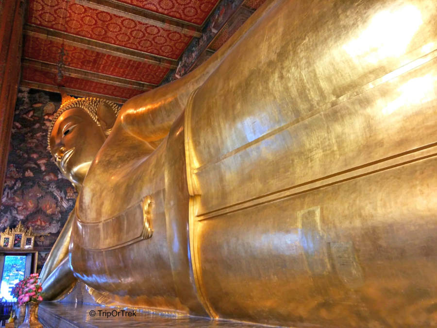 3) Wat Pho: il tempio più grande della città ospita il famoso Buddha disteso. Costruita nel 1832, la statua di Buddha è lunga 46 metri ed alta 15 ed ha gli occhi e le piante dei piedi intarsiati di madre perla.