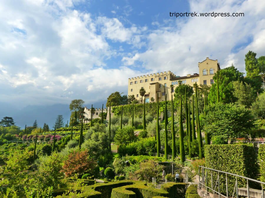 Merano riserva altre sorprese con la visita al Castello di Trauttmansdorff e il suo giardino botanico. Le prime fonti inerenti alla storia del castello risalgono al 1327, nel 1870 venne scelto dalla Principessa Sissi come sede del suo soggiorno invernale. Proprio a seguito delle visite della Principessa, Merano acquisì la fama di località termale. Nel 1939 , durante la seconda guerra mondiale, venne occupato dalle truppe tedesche ed utilizzato come magazzino, alla fine del conflitto iniziò la sua decadenza.